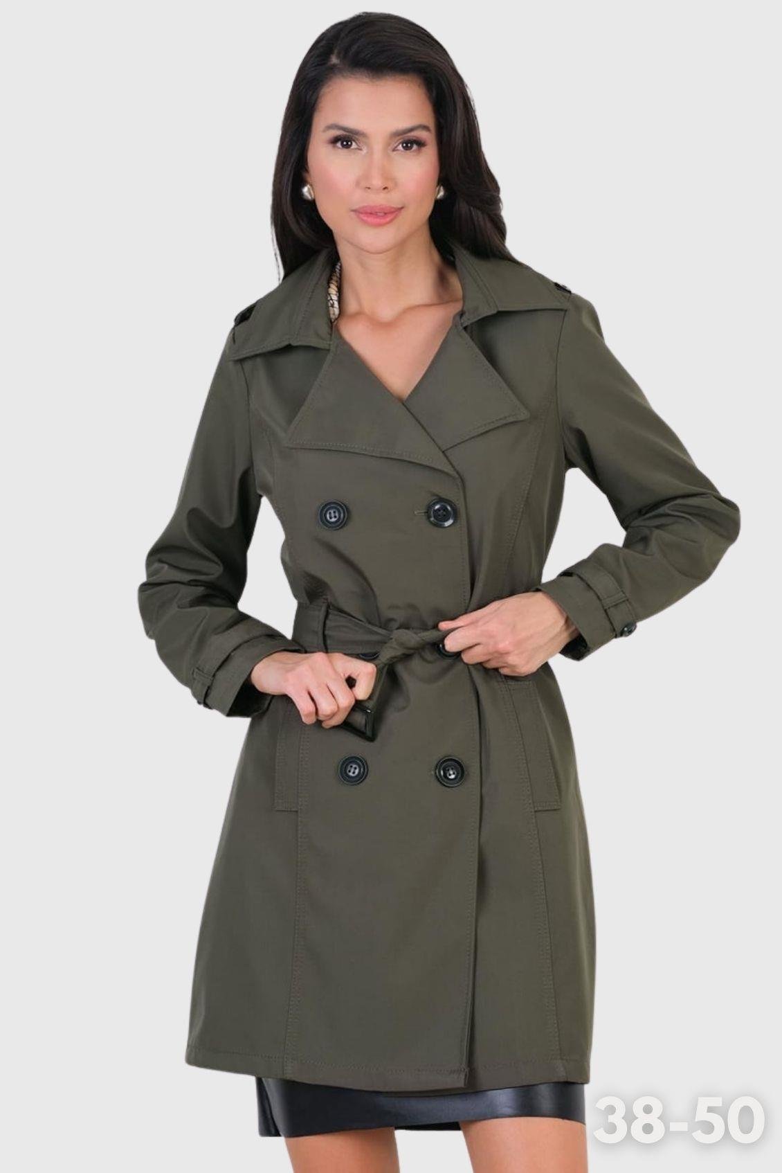 Pallaske Kruvaze Yaka Kuşaklı Cepli Trençkot HAKİ