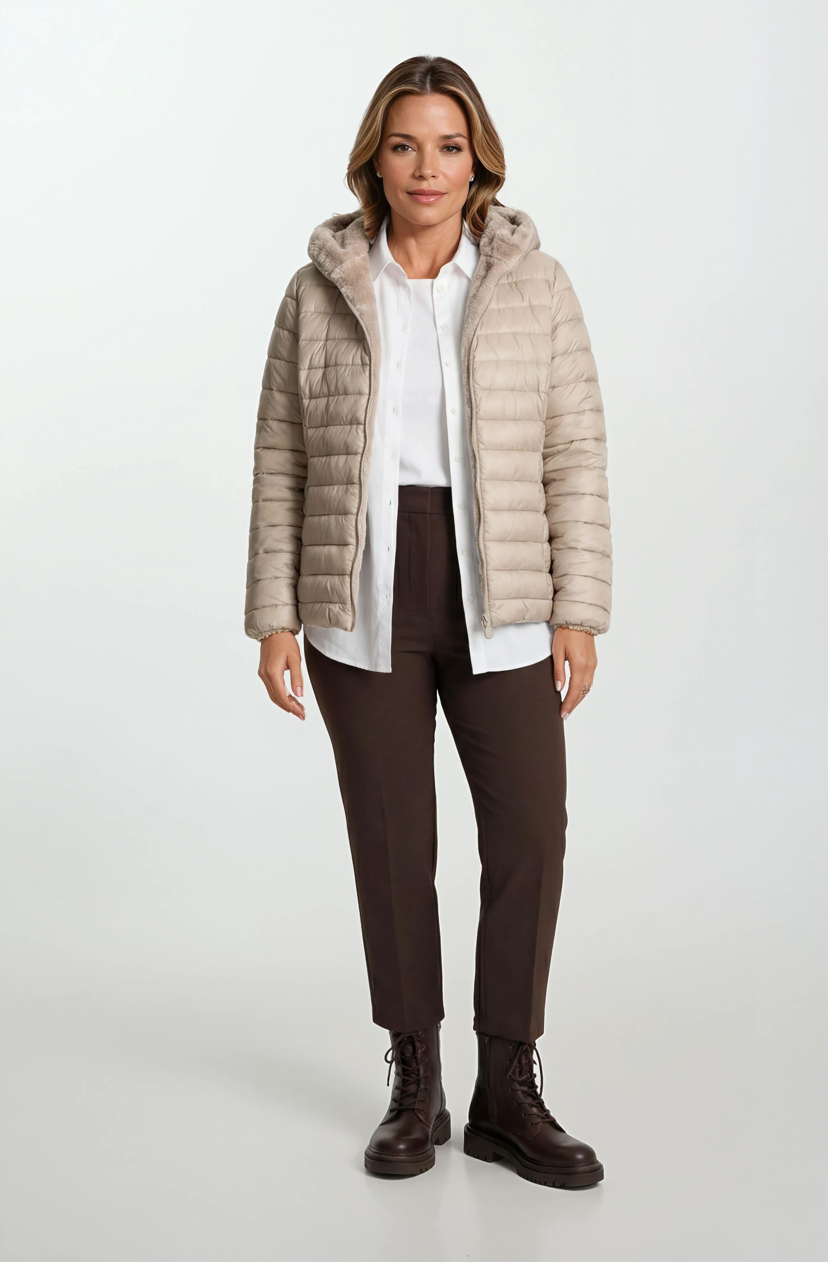 Ranuccio Çift Taraflı Kapitoneli Peluş Kapüşonlu Mont VİZON