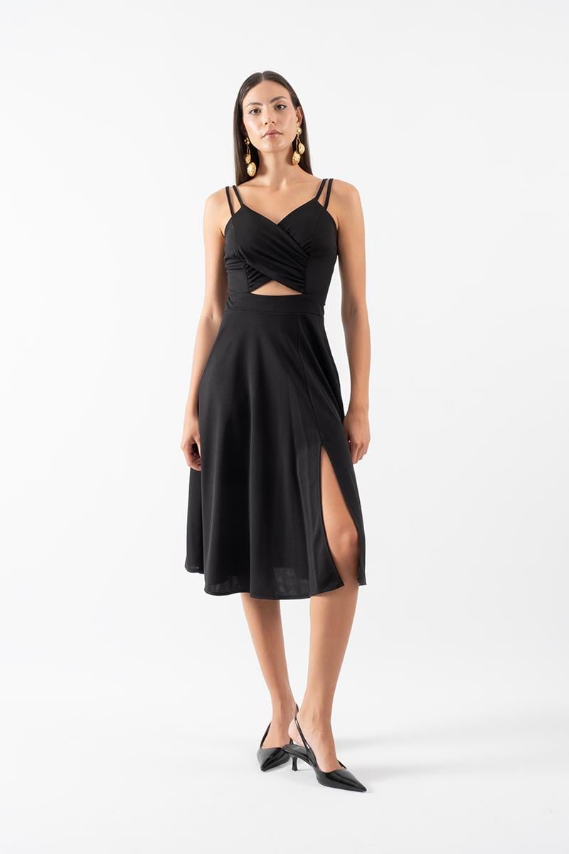 Cavallin Kruvaze Askılı Kısa Abiye Elbise SİYAH (61000182)