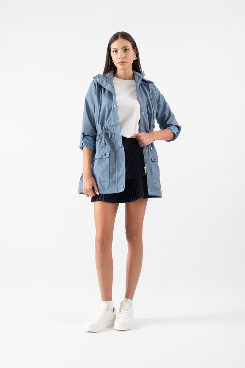 Christensen Kapüşonlu Çıtçıtlı Katlamalı Kol Safari Mont İNDİGO (71000002)