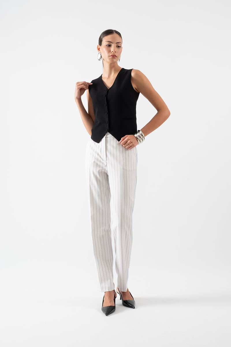 Clementa Klasik Çizgili Krep Pantolon BEYAZ