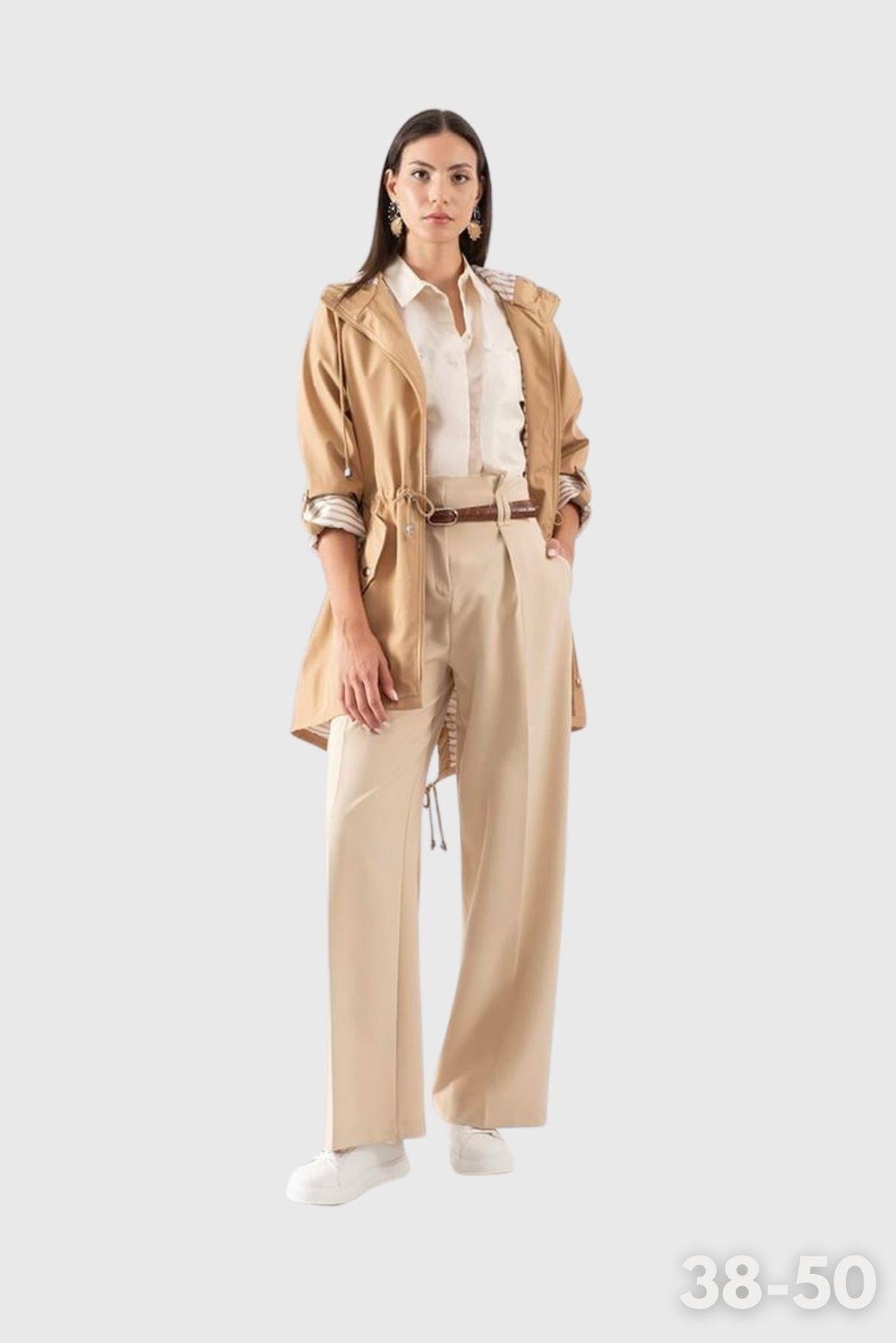 Clemente Kapüşonlu Ayarlanabilir Beli Büzgülü Katlamalı Kol Mont CAMEL