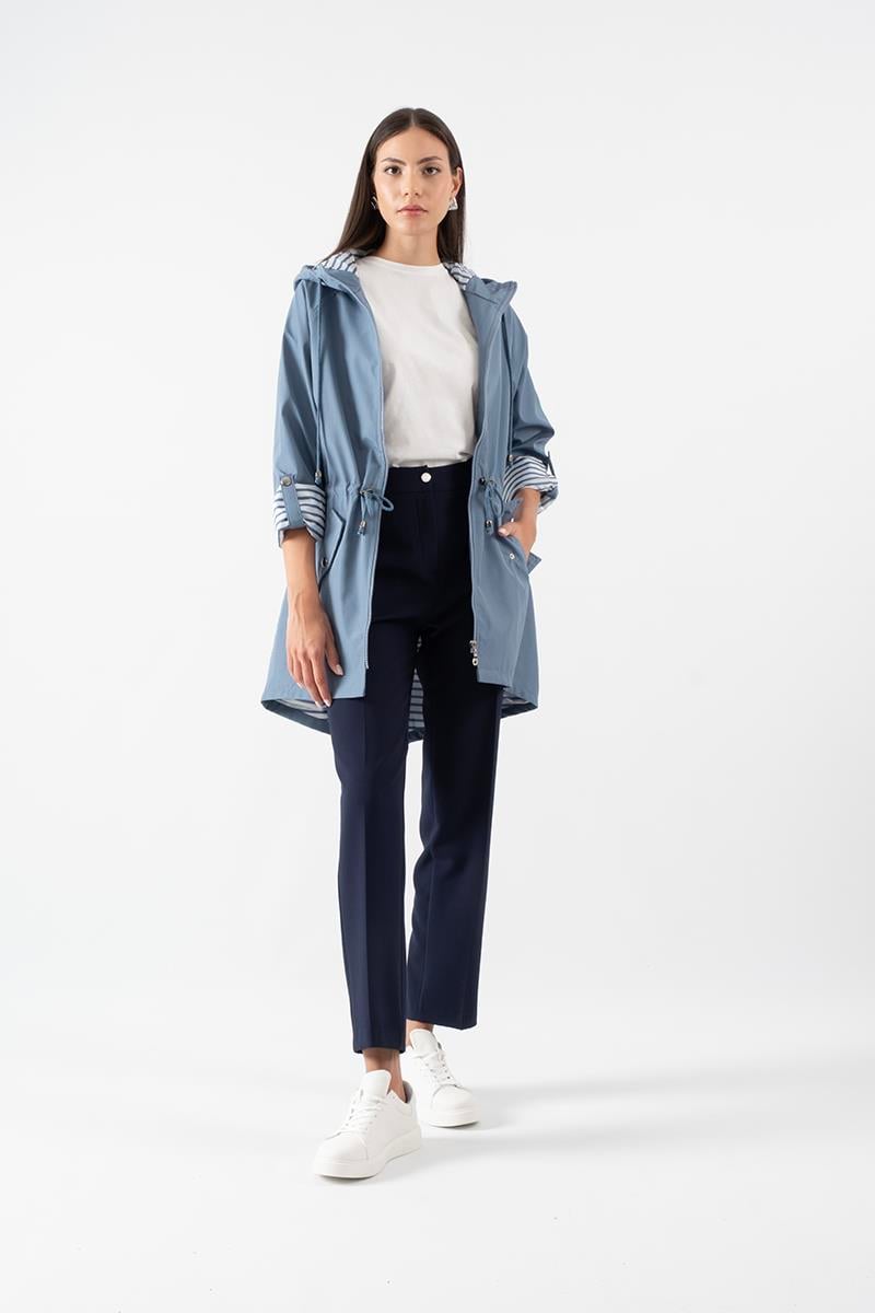 Clemente Kapüşonlu Ayarlanabilir Beli Büzgülü Katlamalı Kol Mont İNDİGO (71000044)
