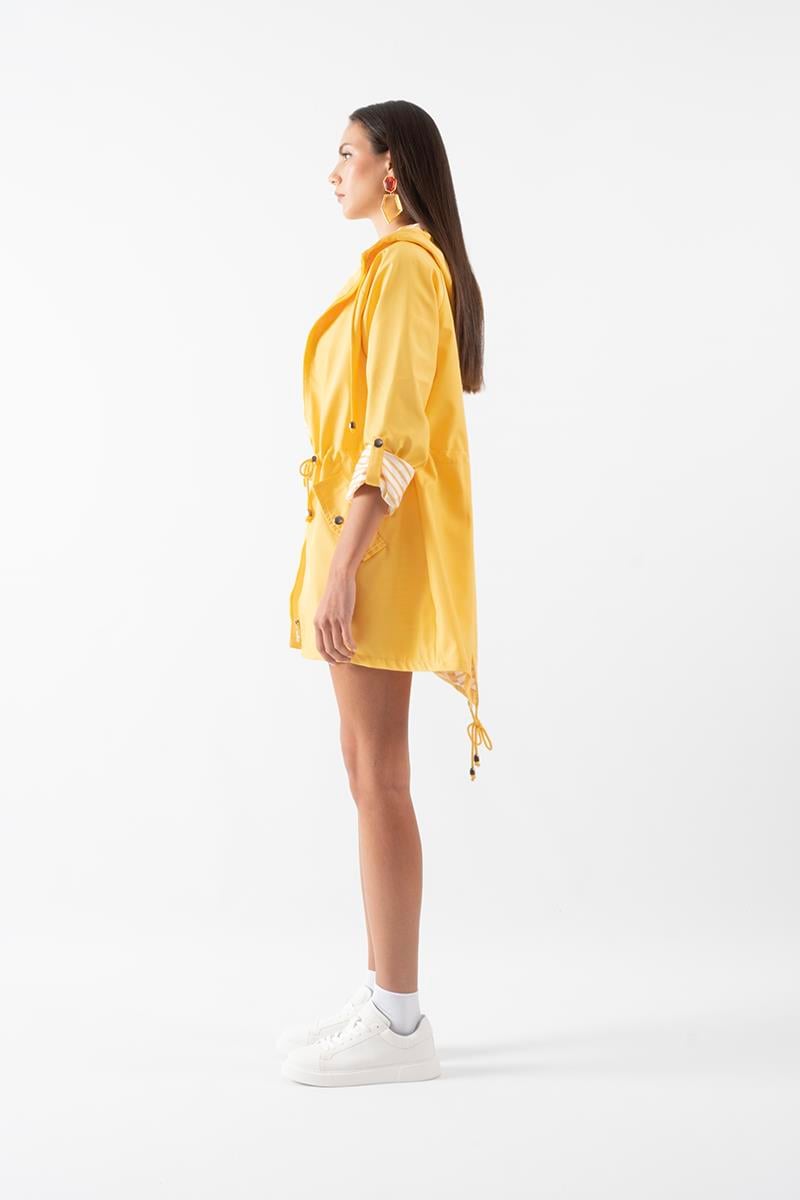 Clemente Kapüşonlu Ayarlanabilir Beli Büzgülü Katlamalı Kol Mont SARI