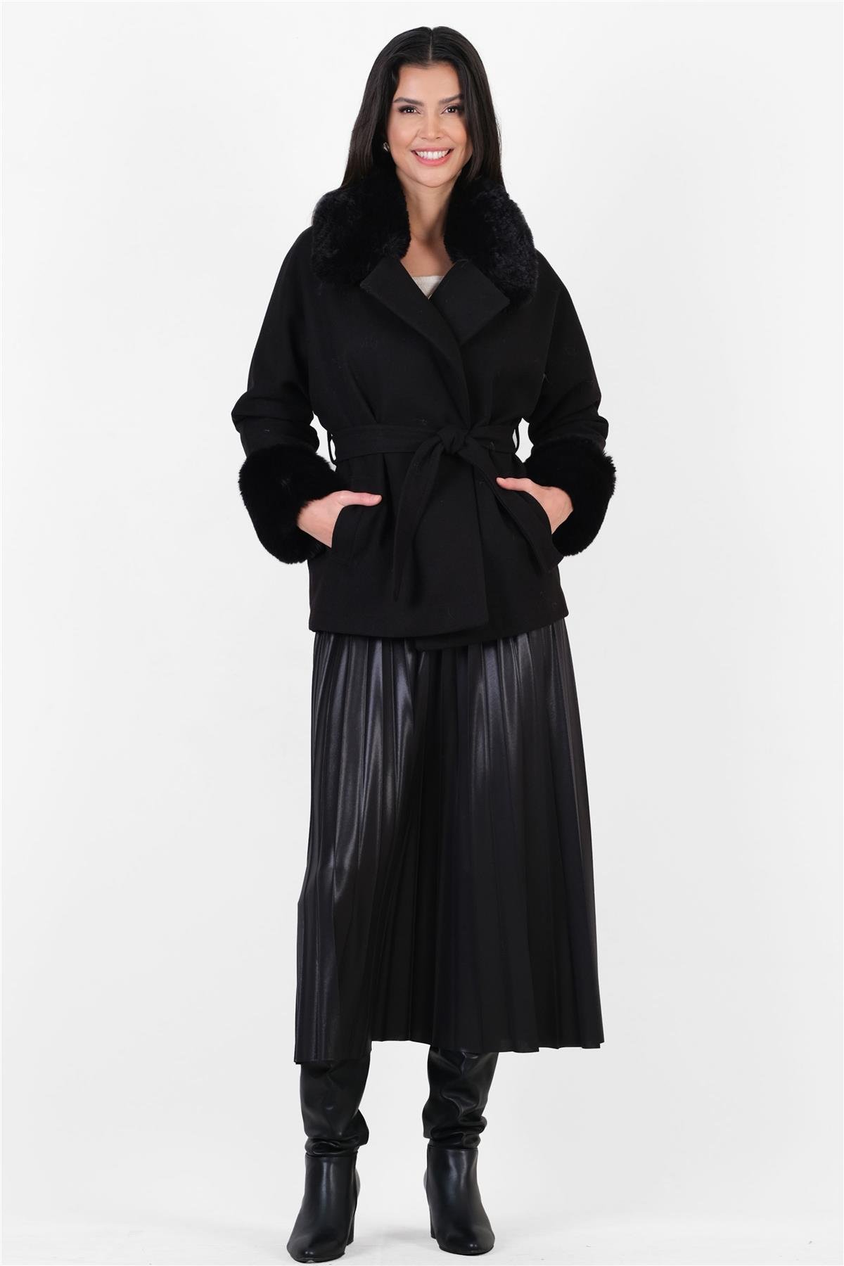 Crispolto Kruvaze Yakası Kolları Kürklü Kaban SİYAH (71000069)
