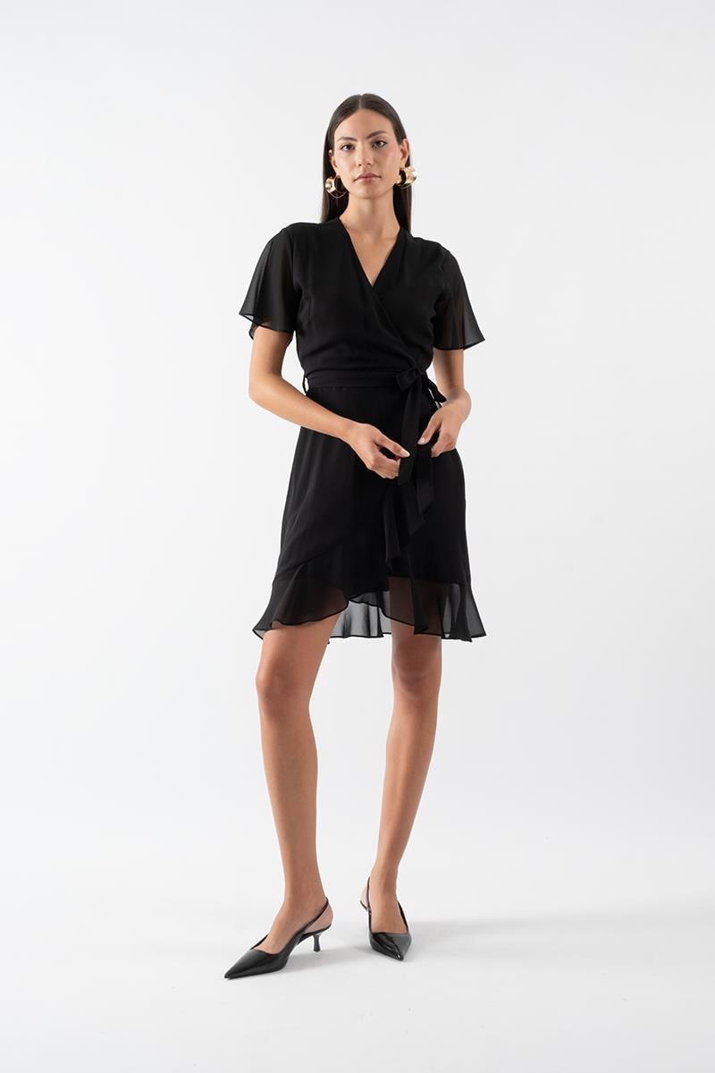 Delizio Kruvaze Yaka Volanlı Elbise SİYAH (51000317)