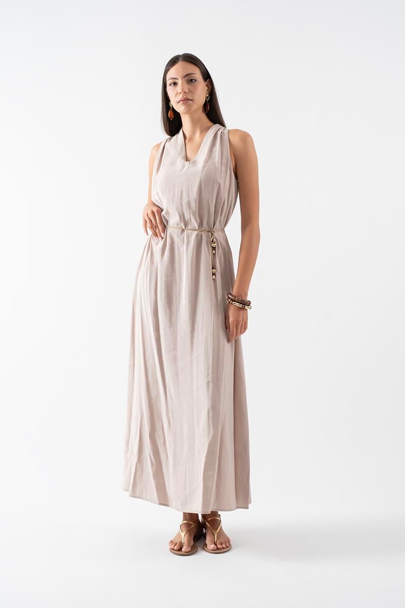 Elmaleh V Yaka İnce Kemerli Elbise BEJ (51000290)