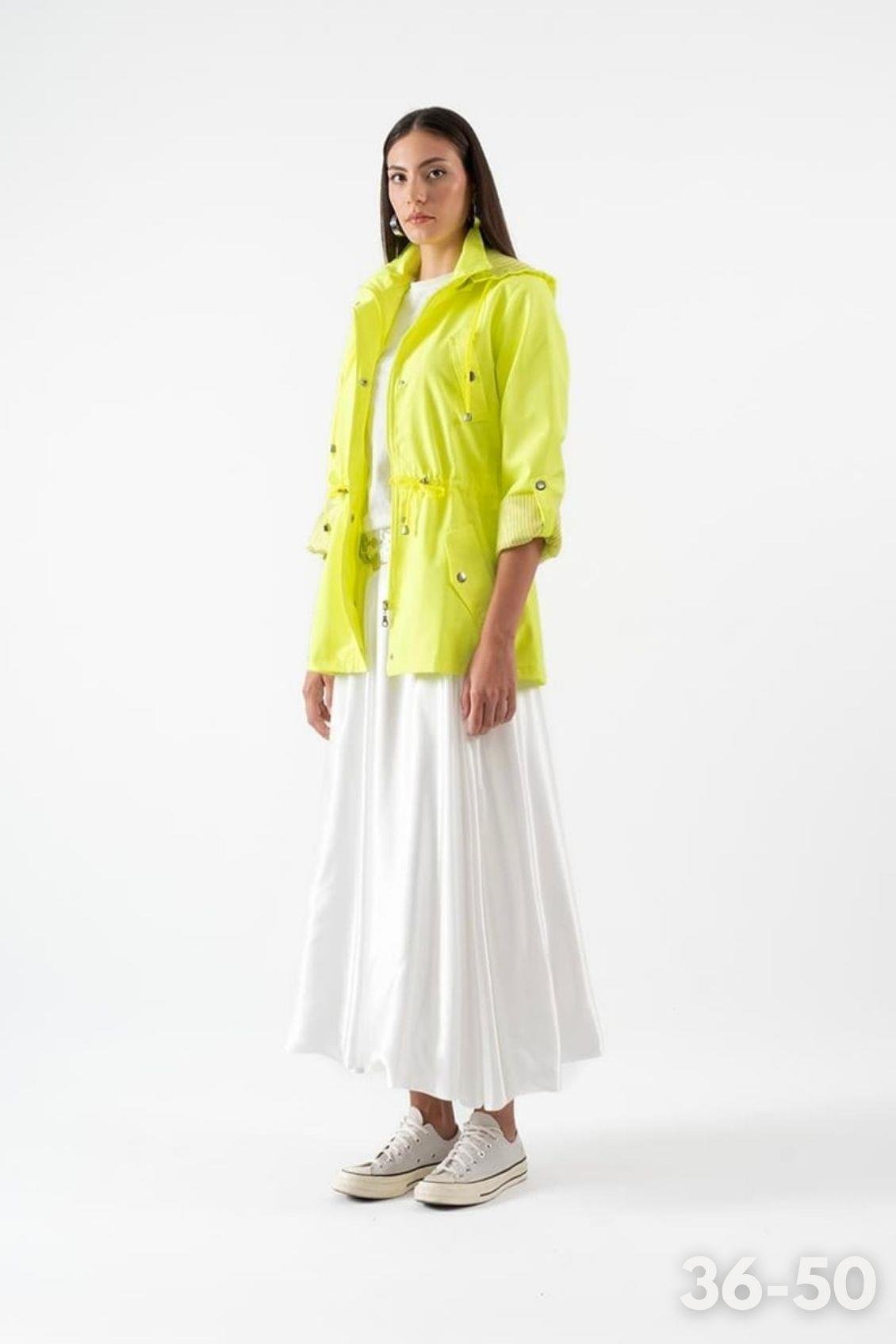 Goudot Kapüşonlu Mevsimlik Parka – Beli Büzgülü, Çıtçıt Detaylı AÇIK YEŞİL
