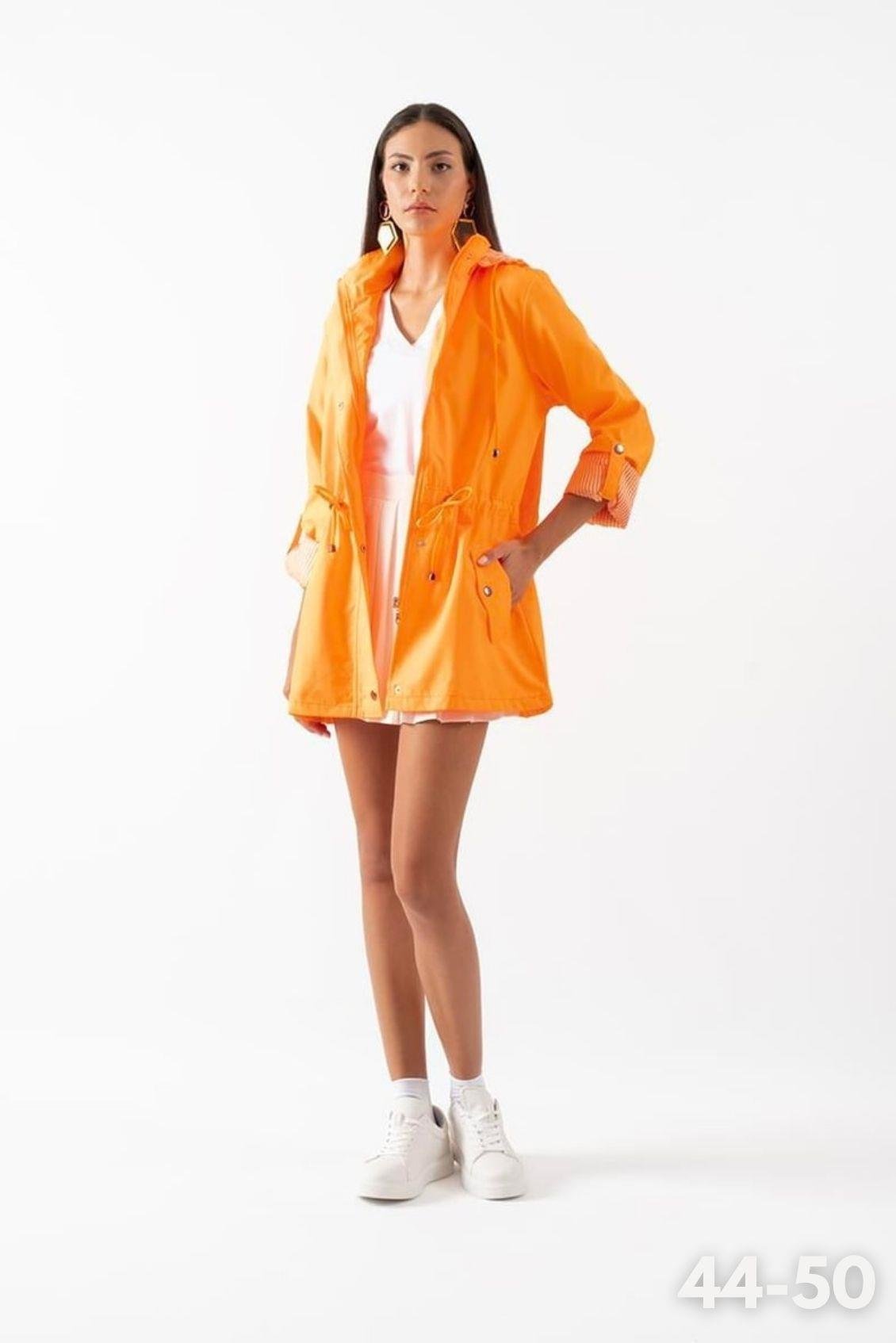 Goudot Kapüşonlu Mevsimlik Parka – Beli Büzgülü, Çıtçıt Detaylı ORANJ
