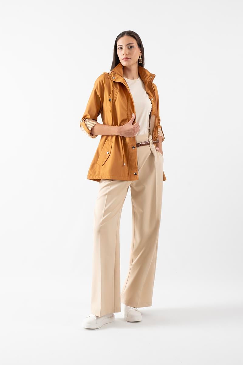 Goudot Kapüşonlu Mevsimlik Parka – Beli Büzgülü, Çıtçıt Detaylı TARÇIN (71000047)