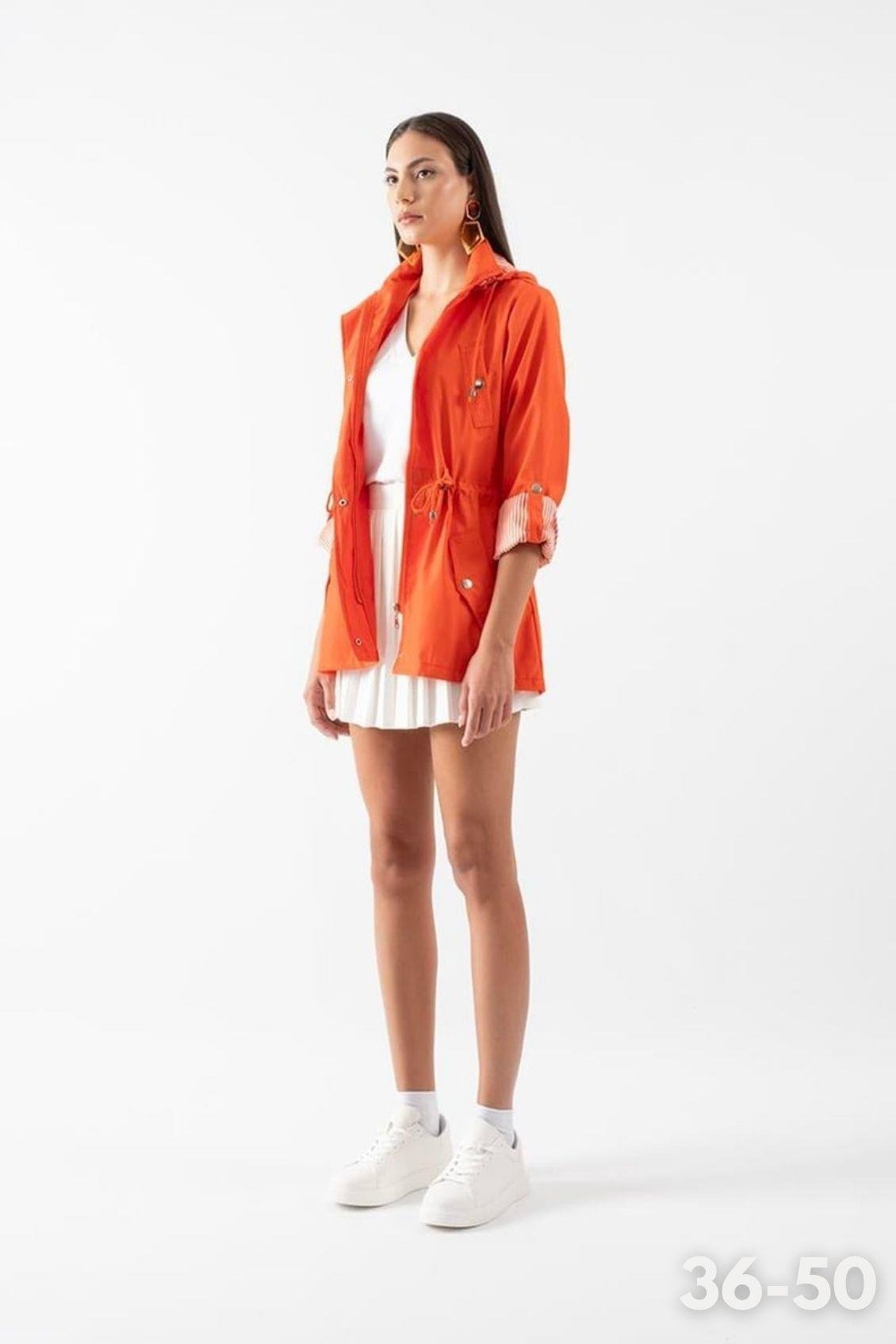 Goudot Kapüşonlu Mevsimlik Parka – Beli Büzgülü, Çıtçıt Detaylı TURUNCU (71000047)