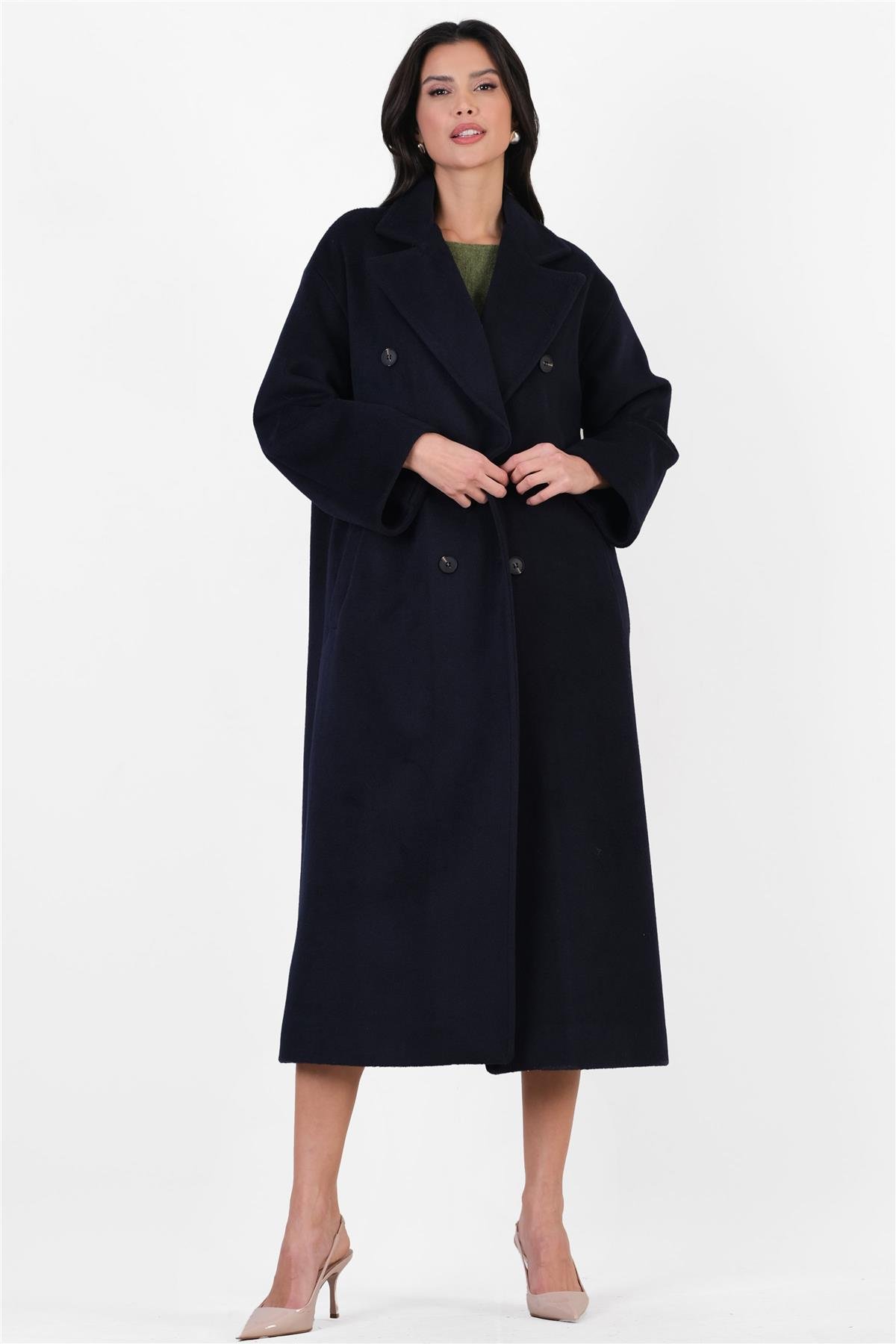 İsonzo Geniş Kesim Kruvaze Yaka Kaban LACİVERT (71000061)