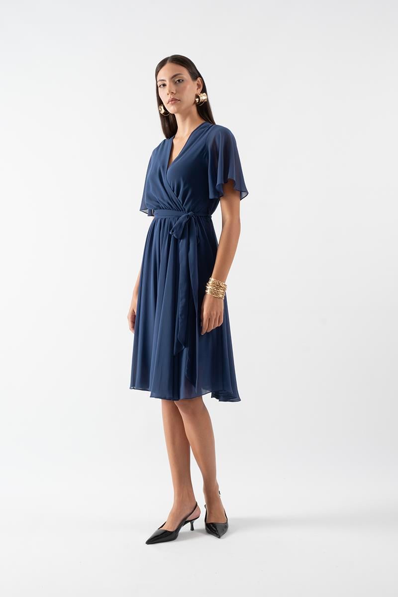 Leonello Kruvaze Şifon Elbise LACİVERT (51000073)