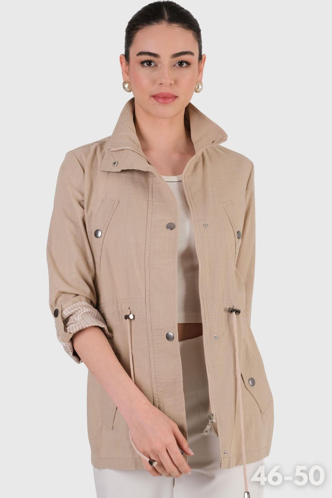 Oriente Dik Yaka Fermuarlı Çıtçıtlı Safari Mont BEJ (71000089)