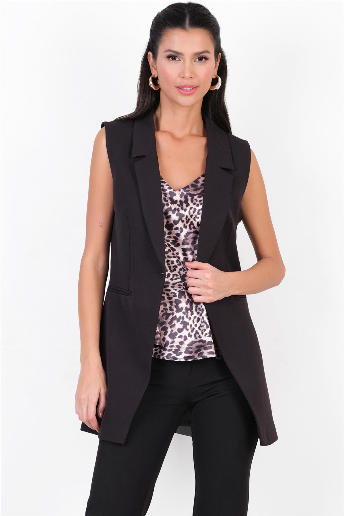 Siyah Uzun Kolsuz Yelek – Şıklık ve Rahatlığın Buluştuğu Parça