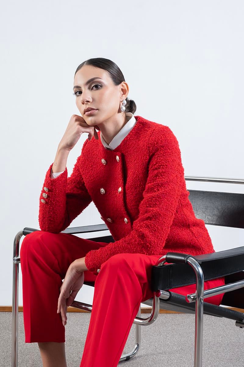 Pepper Yuvarlak Yaka Buklet Ceket KIRMIZI