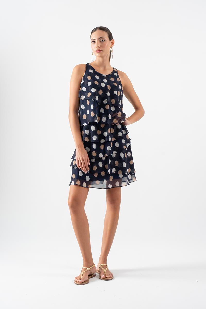 Saccotelli Yuvarlak Yaka Kat Kat Kolsuz Elbise LACİVERT