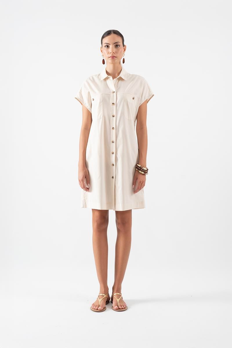 Salvadori Gömlek Yaka Önü Düğmeli Düşük Kol Elbise BEJ
