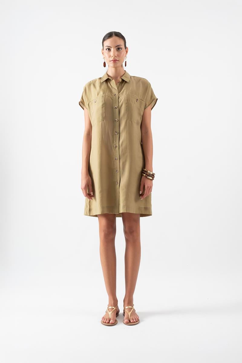 Salvadori Gömlek Yaka Önü Düğmeli Düşük Kol Elbise YEŞİL
